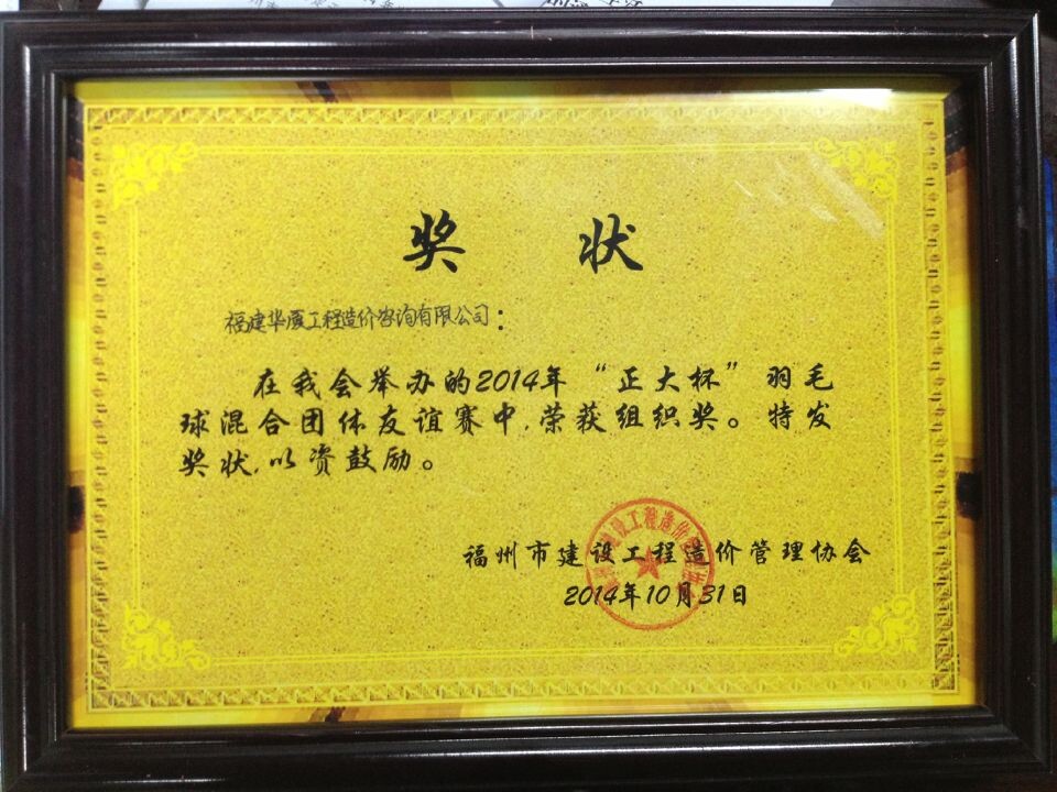 公司职工积极参加福州市建设工程造价管理站举办“正大杯”羽毛球混合团体友谊赛,并荣获“组织奖”。