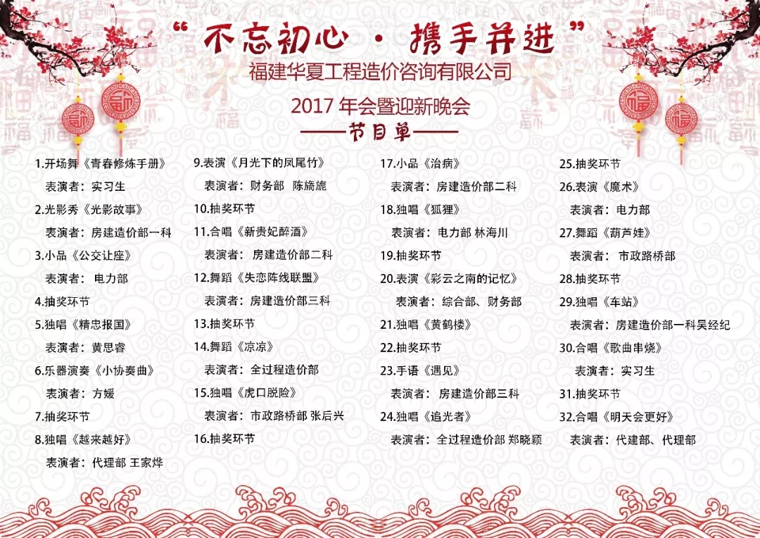 “不忘初心 携手并进 聚力华夏 共谱芳华”完美体育·完美登陆入口-完美online(中国)2017年会暨迎新晚会随着节目表演的进程而完美收官,各个科室团队纷纷上台合影留念,并纷纷彼此祝福。这场高质量、高水平、温馨又欢乐的年会不仅给大家带来了欢声笑语,同时让华夏团队们连接得更加紧密了,让大家对来年的工作树立了信心,更加干劲十足!