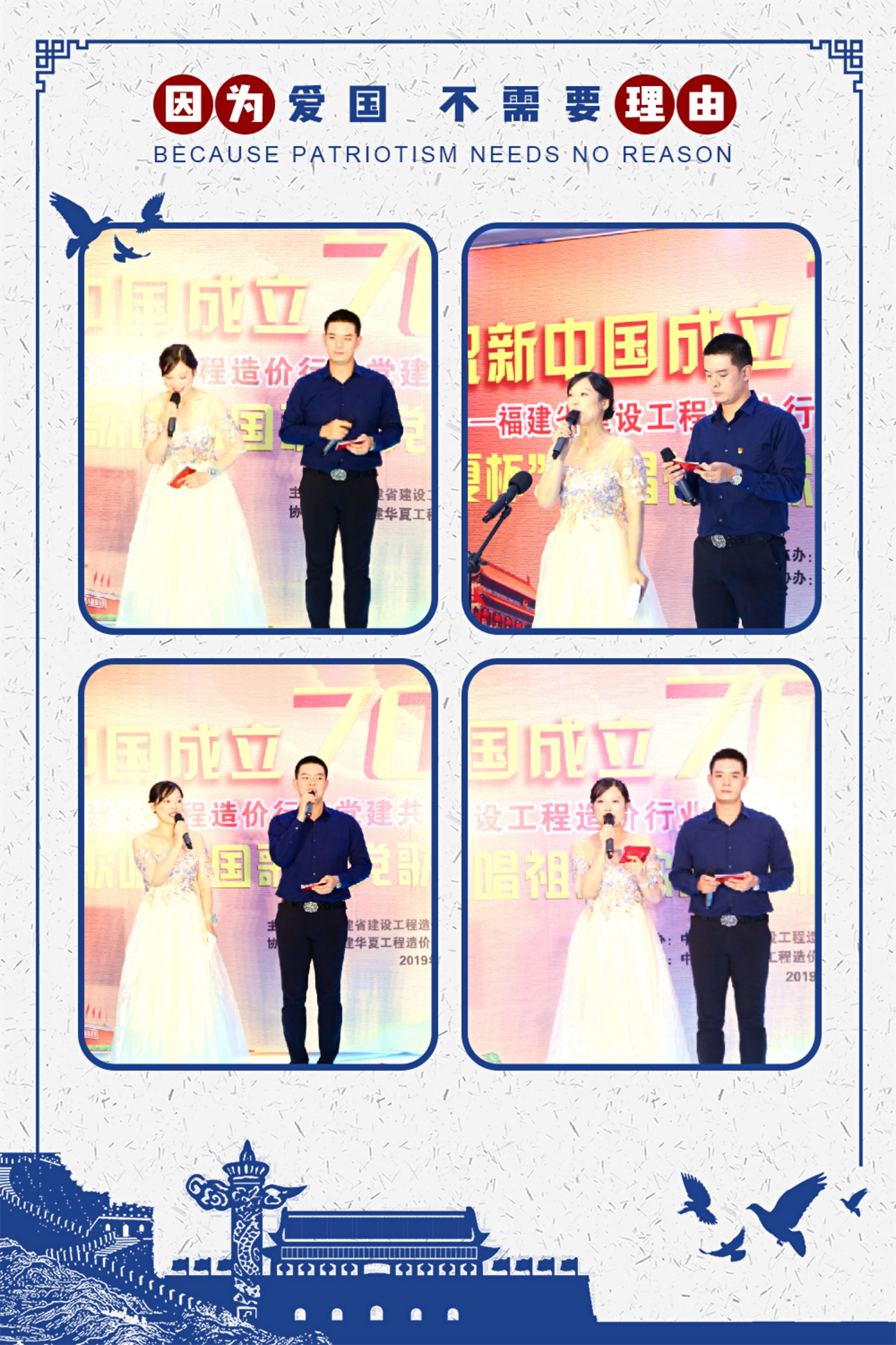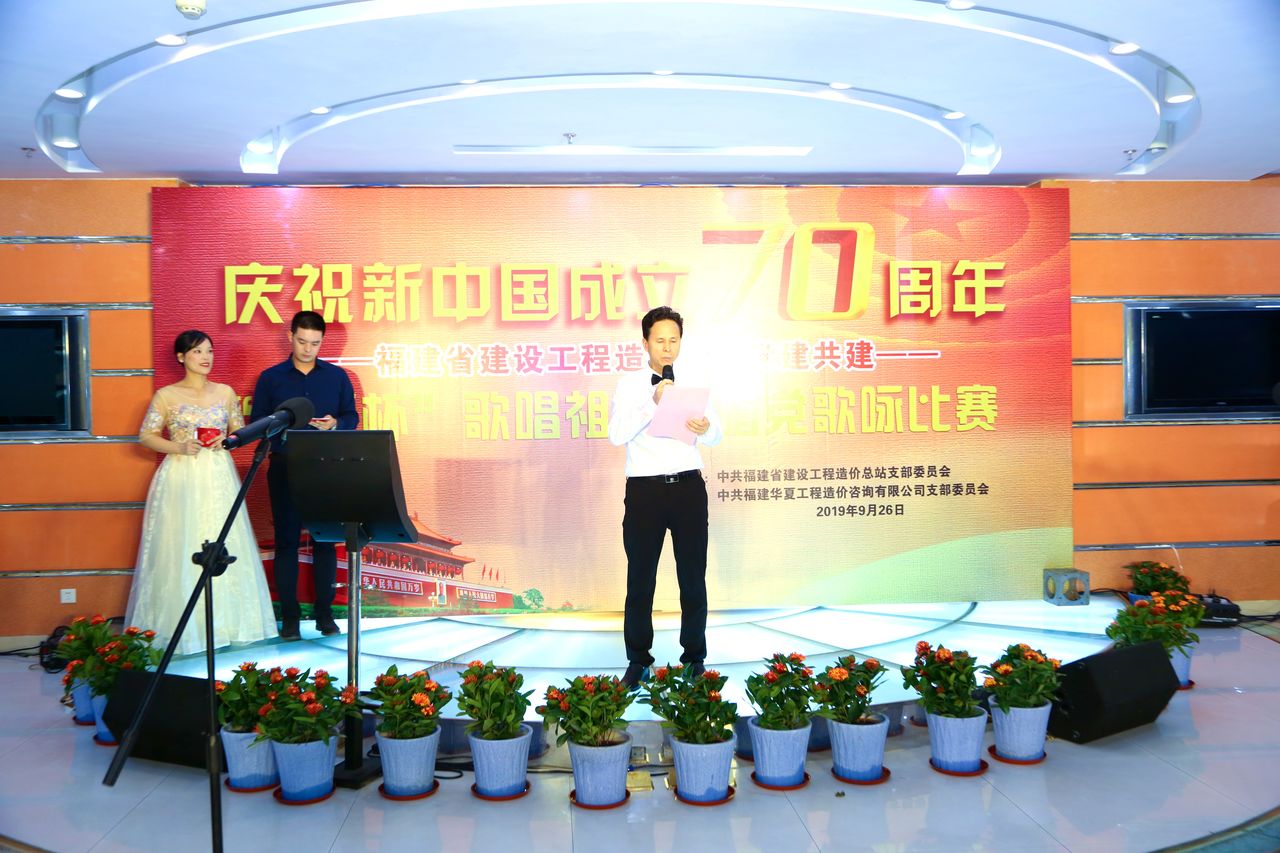 为庆祝中华人民共和国成立70周年,展现造价人不忘初心、奋勇拼搏的雄心壮志,福建省建设工程造价行业13家党建共建单位于9月26日下午,在省直机关工会活动大厅,隆重举行“‘华夏杯’歌唱祖国歌唱党”歌咏比赛。本次歌咏比赛由中共福建省建设工程造价总站支部委员会主办、完美体育·完美登陆入口-完美online(中国)党支部协办。省住建厅机关党委专职副书记卢文英等领导亲临现场指导。